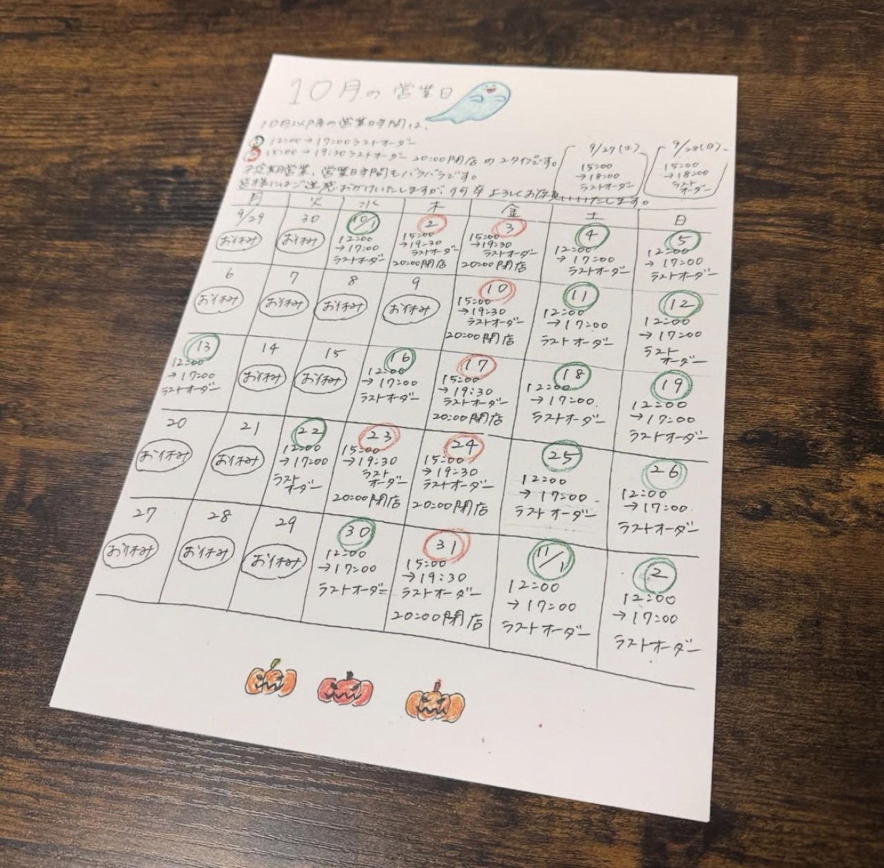 営業日、営業時間がまちまちです。